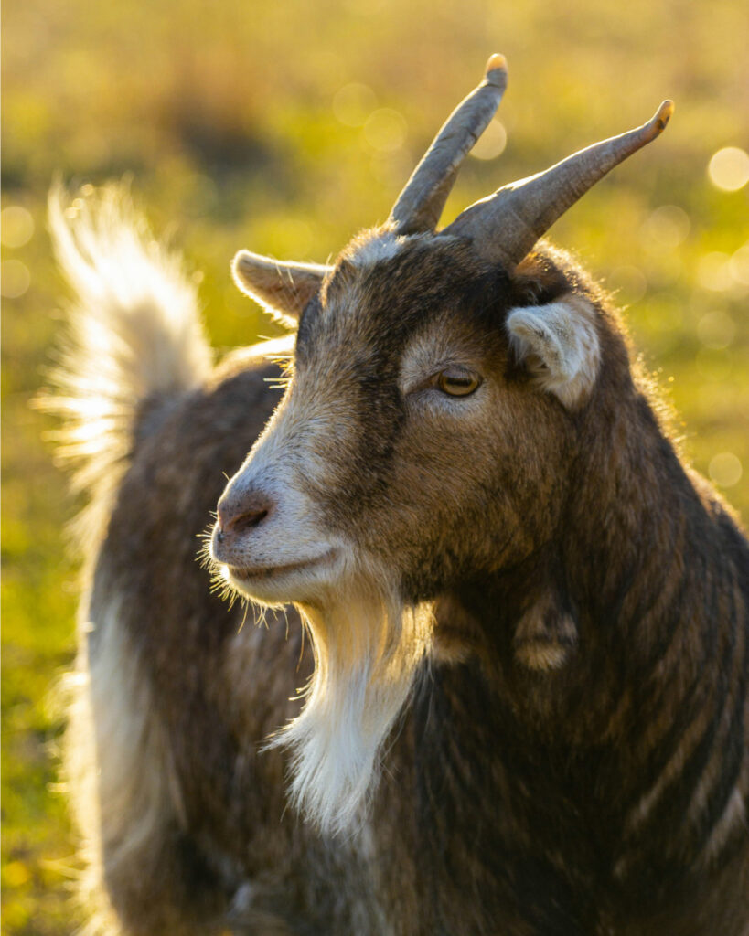Goats (Capra hircus) are social, browsing ruminants adapted to varied terrains, including mountains, grasslands, and arid environments. They are agile climbers with strong spatial awareness and exploratory behaviour. Goats form social hierarchies, maintain group bonds, and communicate through vocalisations, scent marking, posture, and physical interaction.